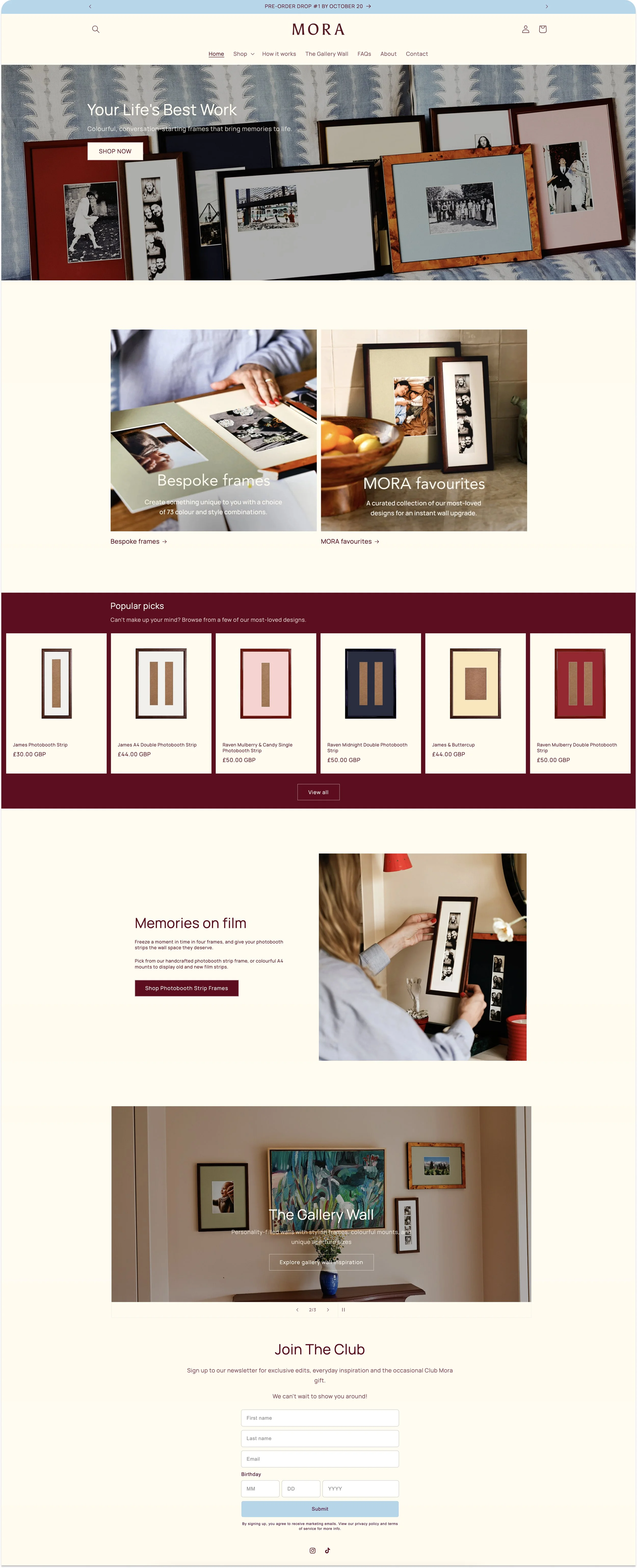Mora is an online framing service providing endless framing styles to fit with your home and personal taste. Bridging the gap between bespoke high-street framers and mass-produced, off-the-shelf picture frames. I was briefed to design the logo, and create a set of brand guidelines and a vision for the website.